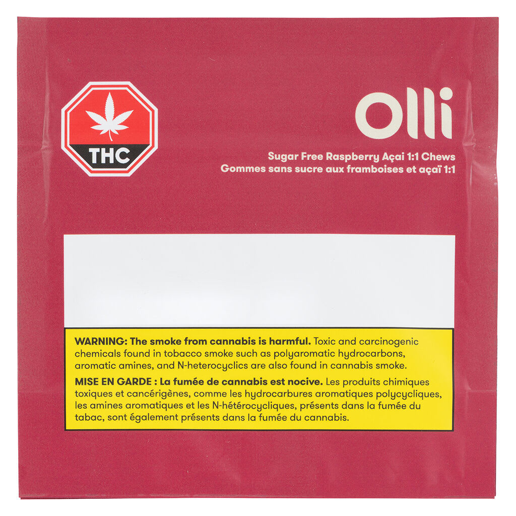 Ollis Raspberry Aai 1:1 Chews are made without sugar and blend the delicious flavour of fresh raspberries with the richness of aai, forming a delightful combination to invigorate your tastebuds. Each soft chew is infused with a balanced 2.5 mg of THC combined with 2.5 mg of CBD. Each soft chew is made without animal products or sugar and made with natural flavours.